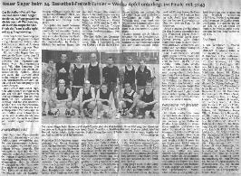 Das zweite Spiel gegen die Hanau Hodners hatte nun schon vorentscheidenden Charakter für den weiteren Verlauf des Turniers. Alle Fehler aus dem ersten Spiel sollten nun abgestellt werden - und es gelang: Dank eines Traum-Starts gingen wir schnell uneinholbar in Führung (6. Minute 18:0), so dass die Partie schon zu Halbzeit (29:6) entschieden war. Dank eines regen Spielerwechsels trugen sich wieder alle Spieler in die Korbschützenliste ein. Herrausragend hierbei: Powerverteilerin Eva (15) und Beppo "Liebhabär" (12). Es zeigte sich außerdem schon jetzt, dass dir Bären-Dreierquote bei diesem Turnier relativ hoch liegen würde (6 Dreier in diesem Spiel). Beim Endstand von 50:13 waren die Hodners regelrecht überrollt, zeigten sich aber als fairer Verlierer - sie wurden am Ende sogar dritter.